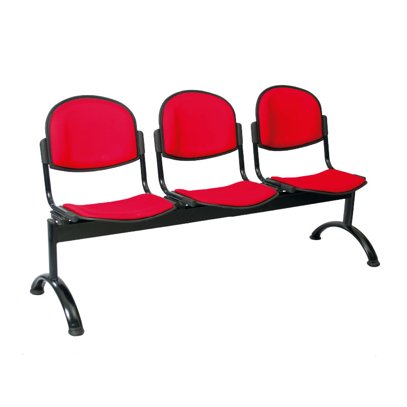 Cal 16, patas en tubo ovalado Cal 16 con pintura electrostática negra y tapones redondos plásticos.Versión: Tándem 2×1 o 3×1 con revistero en tabla de 18 mm de grosor de 47,5 x 40 cms